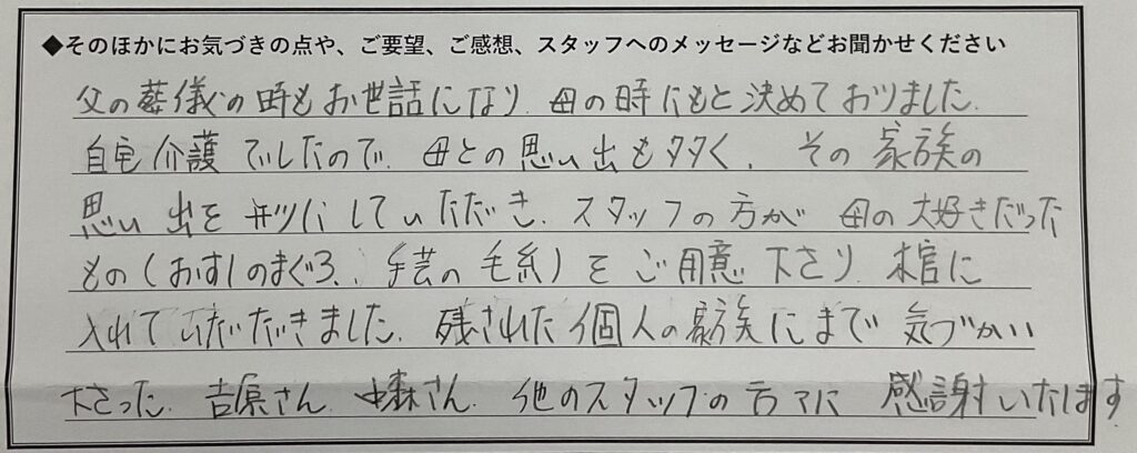 父の葬儀の時もお世話になり 母の時にもと決めておりました。