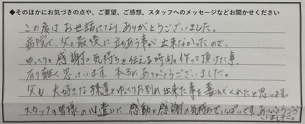 父も大好きな孫達とゆっくりお別れ出来た事を喜んでくれたと思います。