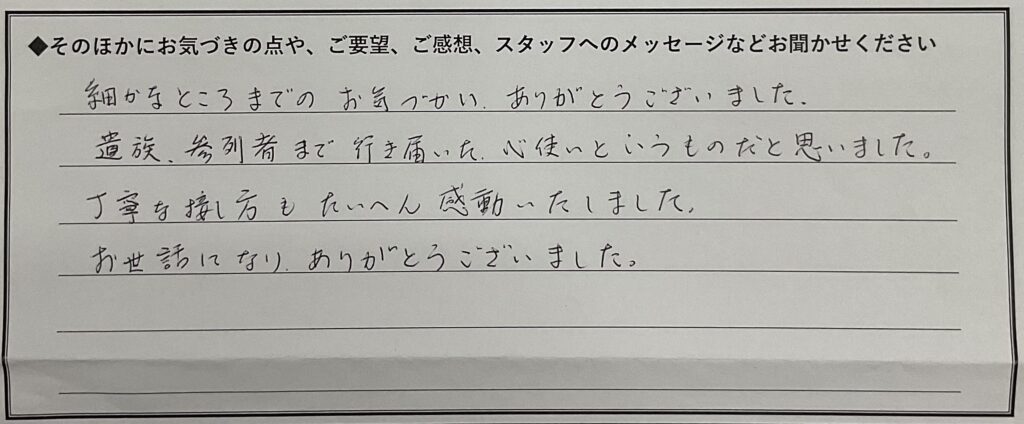 遺族、参列者まで行き届いた心使いというものだと思いました。